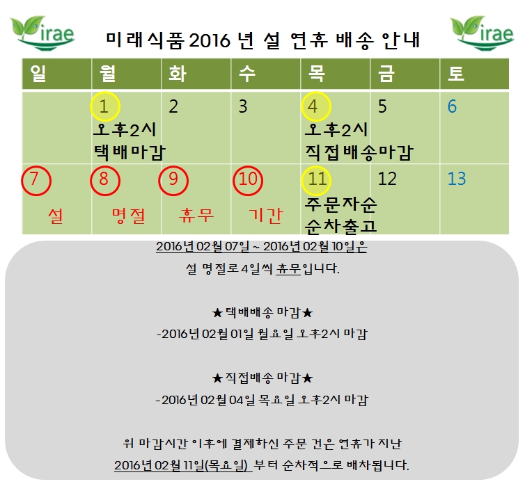 설&대체휴무 연휴와 택배발송 마감 안내 20160226 ~ 20160301