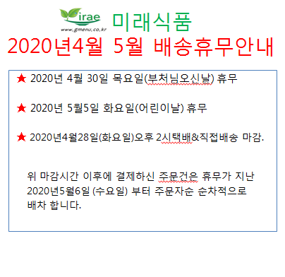 2020년 부처님 오신날/ 어린이날 휴무 배송안내