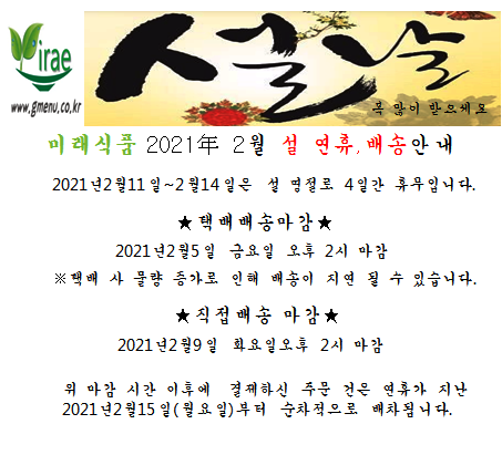 2021년 2월 설 연휴,배송안내